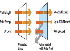 Tinting windows helps reduce visible light (as indicated in percentages above) from entering through a window which increases privacy. In addition to reducing visible light, window tinting dramatically reduces solar energy penetration which reduces heat. Finally, ultra violet light "UV" that causes damage to materials including fading in vehicles is reduced by window tinting.